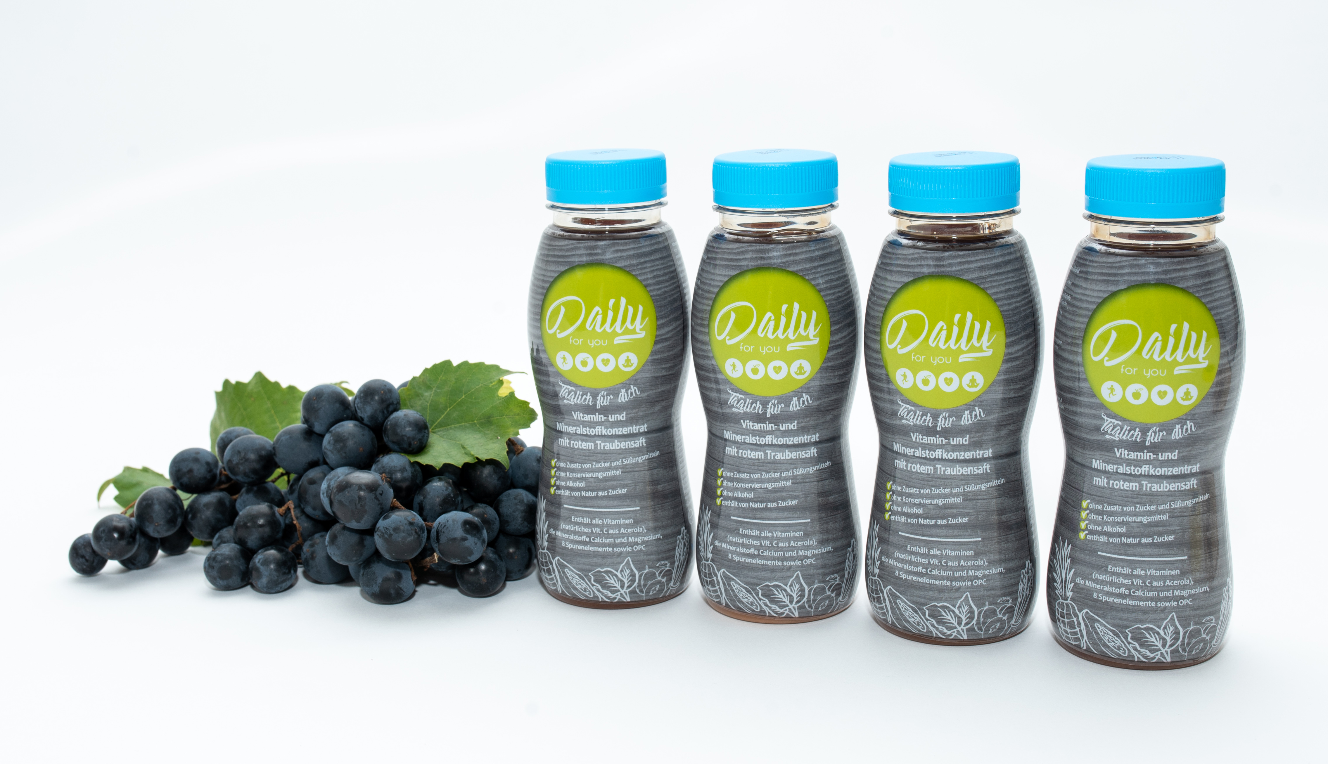 Dann unterstützen Sie Ihren Körper mit unserem DAILY FOR YOU SAFT – Ihre tägliche Vitalstoffquelle für Ihre Gesundheit und Ihr Wohlbefinden! Der Saft besteht aus Vitamin- und Mineralstoffkonzentrat mit rotem Traubensaft ohne Konservierungsmittel und ohne Zuckerzusatz. Unser DAILY FOR YOU enthält keinen Alkohol und ist deshalb auch sehr gut für Kinder geeignet.